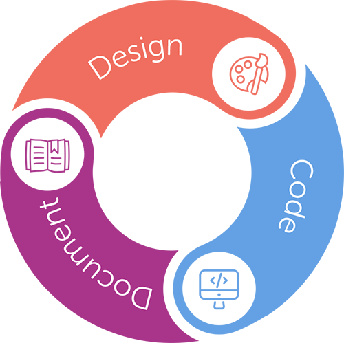 Perhaps it would help if I defined what I’m talking about a little more. A design system is really just a formal process and the documentation associated with that process. For us it came in three parts outlined below.